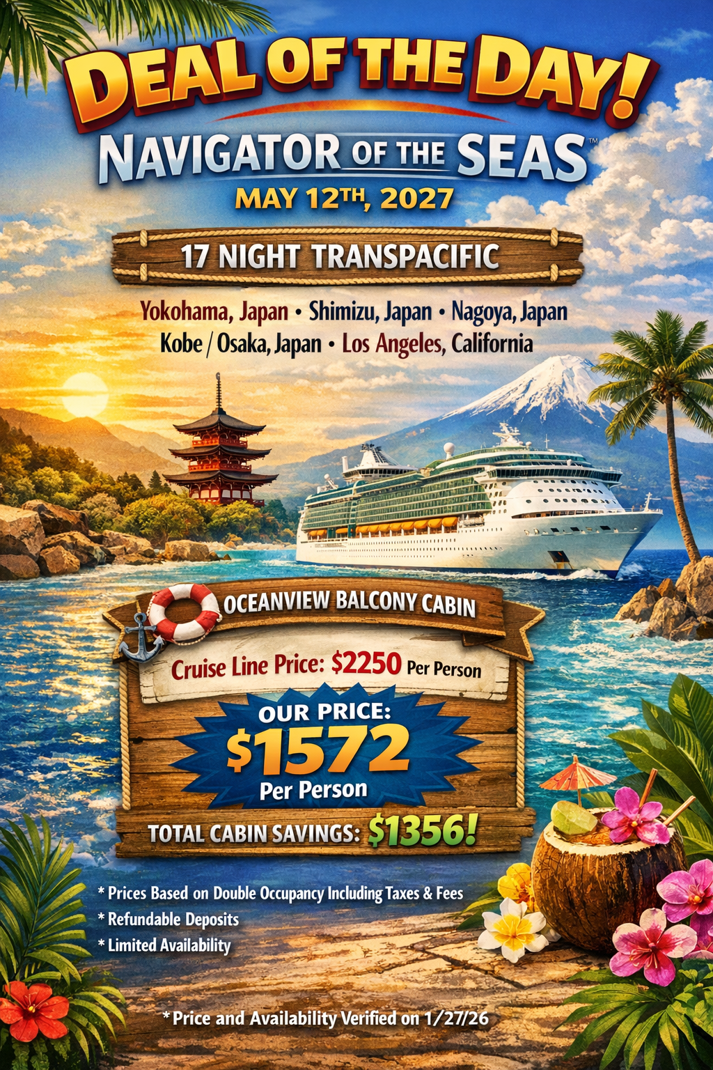 Set sail on an unforgettable 17-Night Transpacific cruise aboard Navigator of the Seas — from Japan to California at an incredible value!