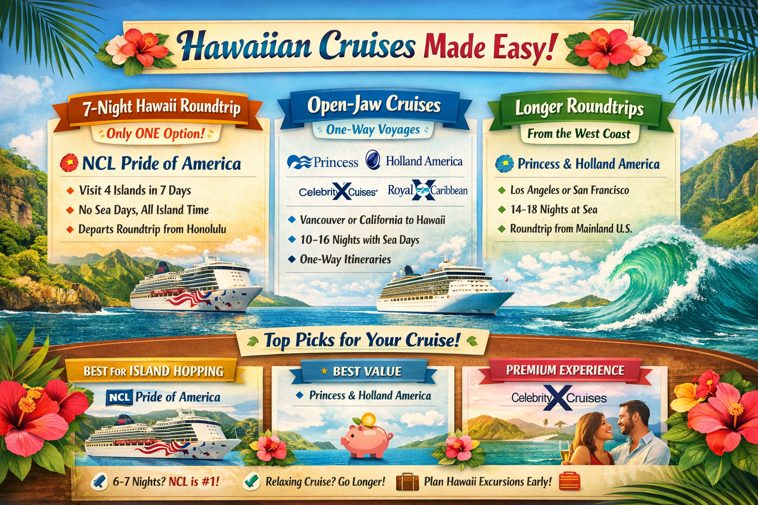 ✅ ONLY cruise line offering true 7-night Hawaii roundtrip cruises